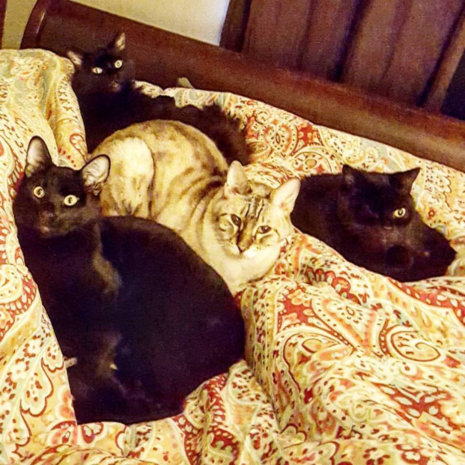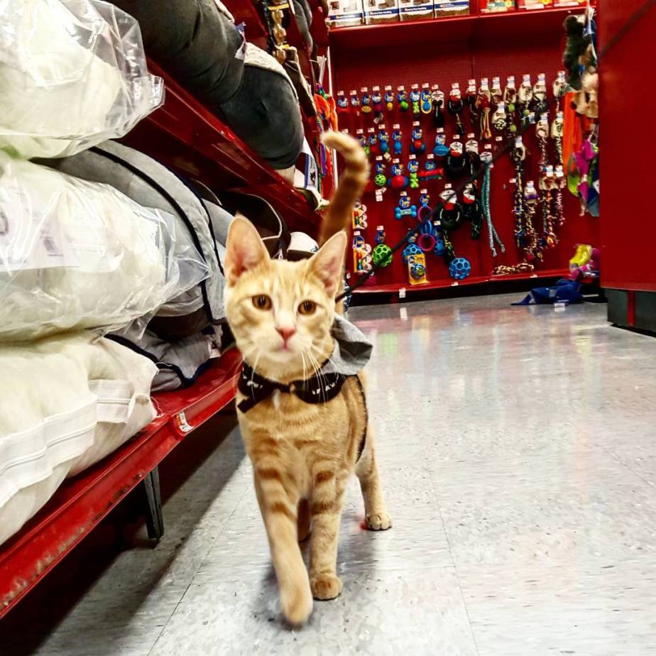Our original black adventure cat, Merlin. Merlin was a rescue from a hoarder situation. He was rejected by his mother and raised by people. We later found out that Merlin had a grade 3 heart murmur. Merlin went everywhere. Outdoors, indoors, & loved adventuring. Sadly he started to get car sick and had to stop going adventures. Merlin is now 13 and adventures in the backyard. Still going strong!
