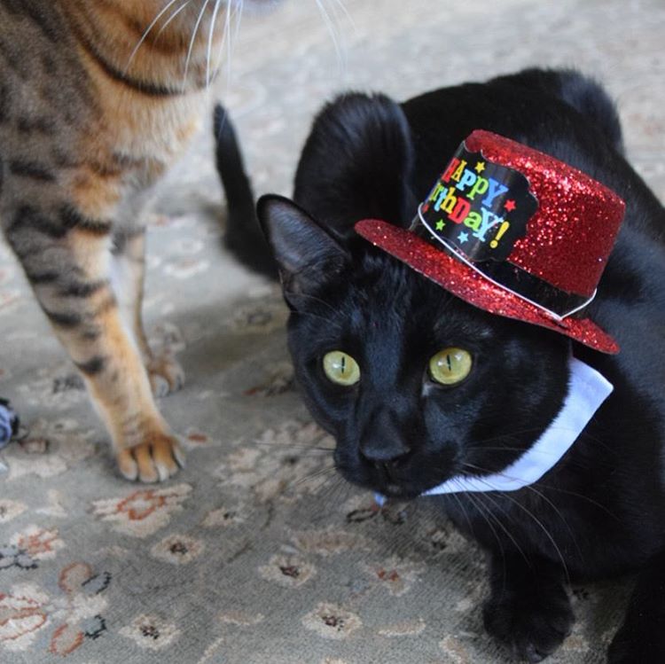 Well we didn’t find any cat-sized bunny ears so here’s me in my birthday hat.